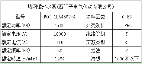 (2)熱網(wǎng)循環(huán)水泵參數(shù)及電機(jī)參數(shù)