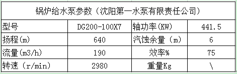 (3)75t\h鍋爐給水泵電機(jī)及水泵參數(shù)