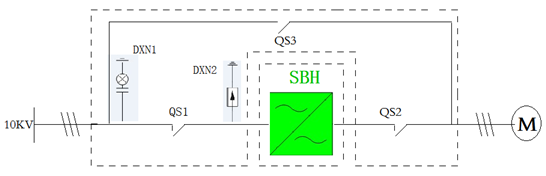 森蘭高壓變頻器一拖一手動(dòng)旁路一次系統(tǒng)圖
